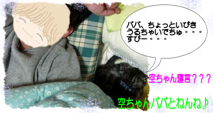 暫くはテーブルの上からパパのいびきをかくすがたをじーーっと眺めていました。